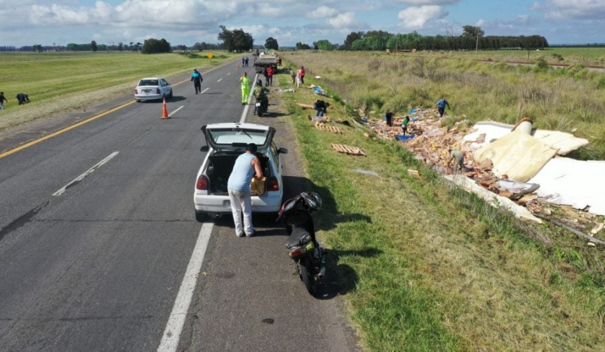 El despiste del vehículo marca Volvo se produjo en circunstancias que son materia de investigación, y el acoplado quedó destruido, aunque su conductor salió ileso. En ese momento, rápidamente decenas de vehículos particulares se detuvieron en el lugar y sus ocupantes descendieron para llevarse la mercadería, informó el diario La Capital.