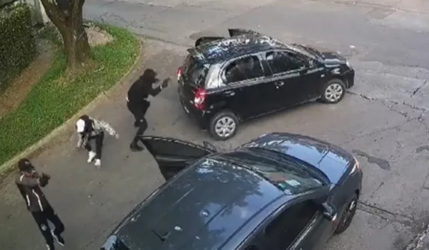 Las imágenes de las cámaras de seguridad captaron el momento en el cual cuatro delincuentes se bajan de un Toyota Etios y apuntan hacia el interior del vehículo donde estaba el gendarme, junto a un compañero de la fuerza. En ese momento se escucha que uno de los ladrones que grita "¡levantá las manos!", y se inicia un intercambio de disparos entre delincuentes y gendarmes.