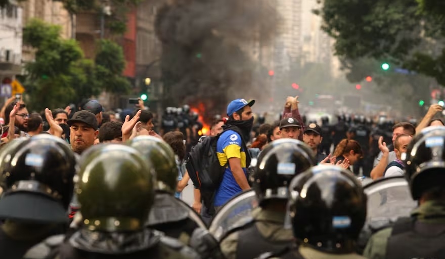 Una marcha convocada para rechazar el ajuste sobre los jubilados, a la que se sumaron hinchas y "barrabravas" de distintos equipos de fútbol y agrupaciones de izquierda, derivó en graves incidentes en las inmediaciones del Congreso, donde un masivo operativo de las fuerzas de seguridad impidió a los manifestantes reunirse en un punto de encuentro y dio paso a que grupos violentos se enfrentaran con policías y gendarmes, que los dispersaron utilizando gases y detonaciones de balas de goma.