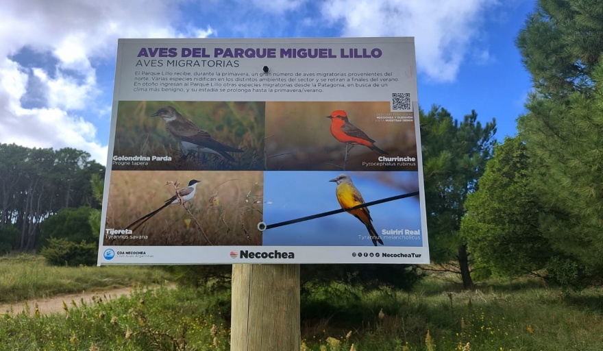 La Secretaría de Turismo y Desarrollo Productivo informa que ya se puede recorrer el "Sendero de aves" del Parque Miguel Lillo, ubicado en el camino que nce sobre avenida 10, a continuación de la calle 117. Se trata de cartelería con imágenes y descripciones de las especies que se encuentran en ese sector del bosque.