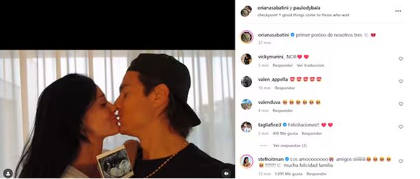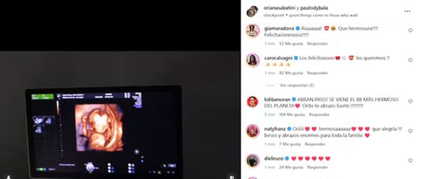 Oriana Sabatini y Paulo Dybala anunciaron que serán padres por primera vez a través de Instagram, donde la pareja compartió un tierno video mostrando la ecografía de su bebé. Rápidamente, la publicación se llenó de likes y comentarios de famosos que les enviaron sus felicitaciones y buenos deseos.