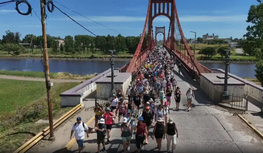 La caminata comenzó por la avenida 74 hasta la avenida 43 y, de ahí, hacia el Puente Colgante. Desde allí, se dirigen a Quequén, por la 519 , donde harán la primera parada en el Colegio Nuestra Señora de la Merced, para hacer un descanso y prepararse para el tramo siguiente.