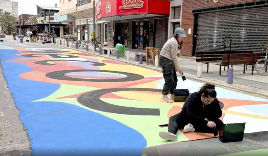 Sebastián Serqueira, director del Centro Cultural Municipal, realizó el diseño que llenará de "muchos colores" el paseo, según Antenucci y encabezó este lunes un grupo de voluntarios en la ejecución de la "pintada".