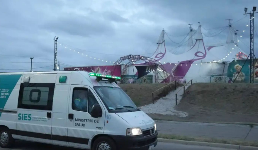 Una joven equilibrista del circo ubicado en avenida 10 y calle 63 de Necochea, protagonizó una caída al suelo desde varios metros y sufrió heridas cortantes en la cabeza, brazos y, posiblemente, alguna fractura, por lo que debió ser trasladada de urgencia al Hospital Municipal.