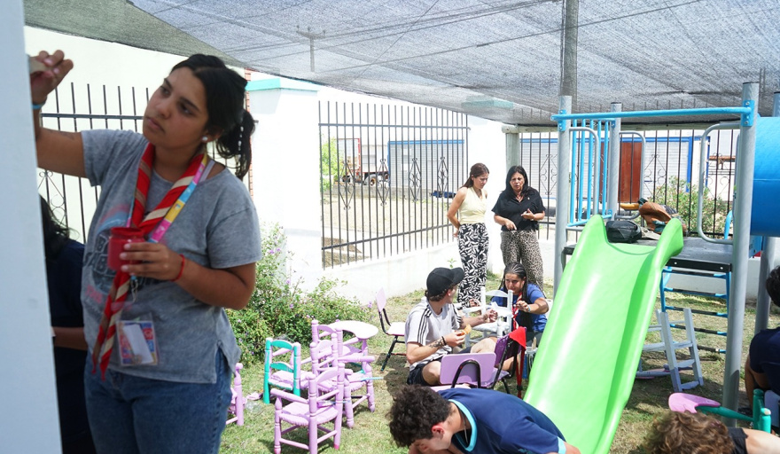En ese contexto, la labor de los scouts estuvo orientada a acciones de puesta en valor y embellecimiento del establecimiento, como la pintura de un mural en el patio, el acondicionamiento y pintura de sillas y la puesta en condiciones de distintos muebles, con el objetivo de dejar el jardín preparado para el inicio del próximo ciclo lectivo.