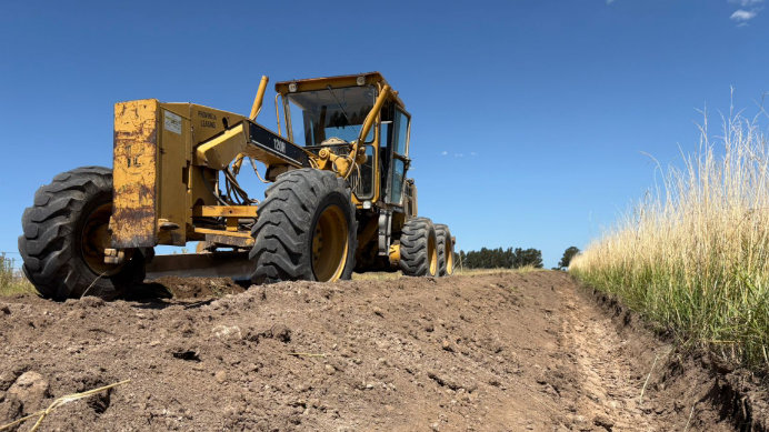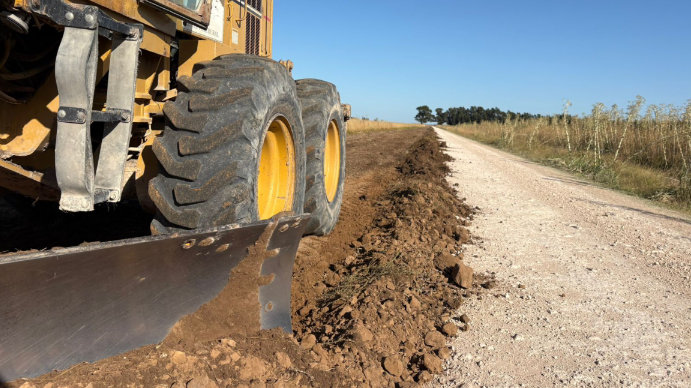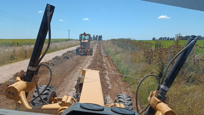 Entre los trabajos más destacados se realizó la reconstrucción del camino municipal 076-02, en el tramo que conecta la Ruta Provincial 228 con la localidad de Ramón Santamarina, una arteria fundamental para la producción y el traslado de vecinos.