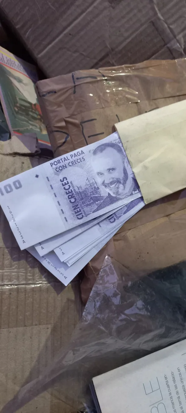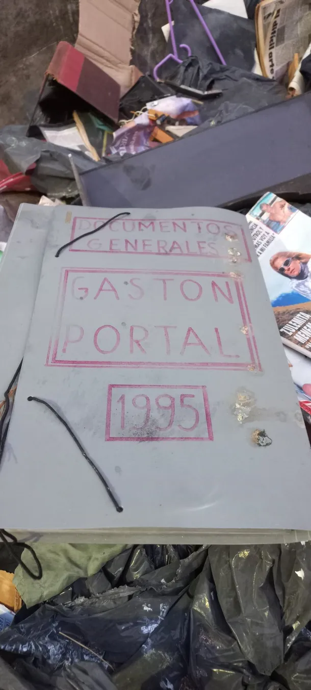 Entre los objetos que aparecen en las imágenes hay documentos, recortes de diarios, material televisivo y recuerdos personales vinculados a la carrera del conductor. Uno de los hallazgos más llamativos es una carpeta rotulada como “Documentos Generales Gastón Portal 1995”, aparentemente vinculada al productor televisivo e hijo del conductor. También se ven fajos de papeles impresos con la cara de Portal y la frase “Portal paga con creces”.
