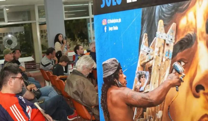 Las actividades de “Necochea a Maradona” comenzaron hoy por la noche con la inauguración de la muestra fotográfica “Sólo el pueblo”, del fotógrafo Jorge Boido, un trabajo centrado en los murales dedicados al ídolo popular en distintos puntos del país. La exposición forma parte de un proyecto mayor que el artista denomina “Un Dios plebeyo”, un registro que indaga en la apropiación de la figura de Maradona por parte del arte popular.