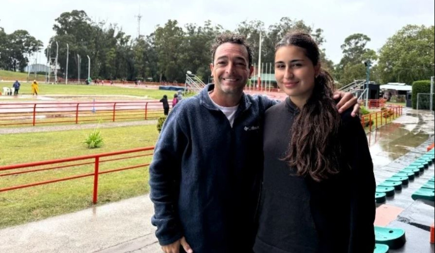 El sábado en Mar del Plata, en el torneo homenaje a la necochense Ana María Comaschi, referente del atletismo argentino formada en la ciudad, la joven Rosario Coronel, junto al coordinador de la Escuela Municipal, Mauro Cabrera, estuvieron presentes en una jornada que se caracterizó por una lluvia intensa durante casi todo el desarrollo del evento.