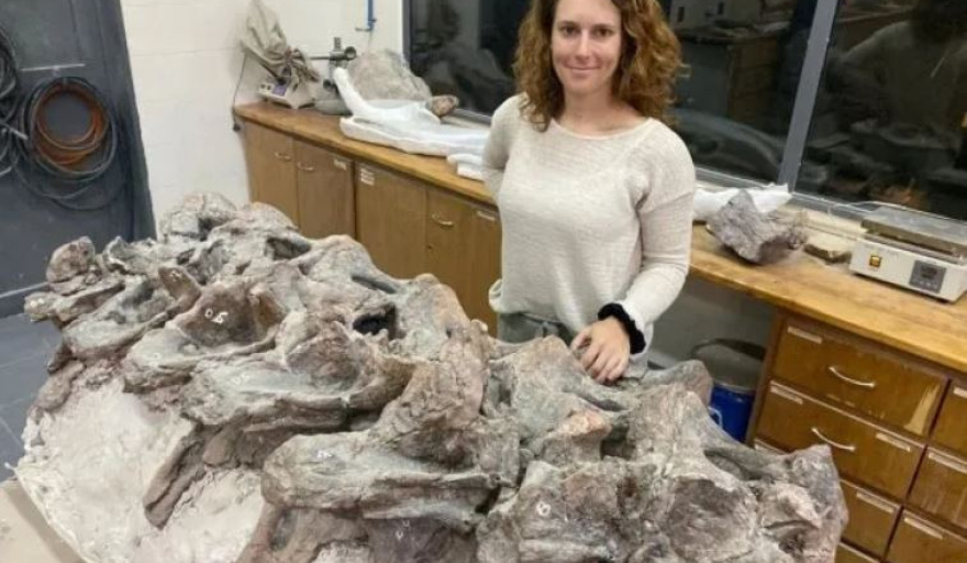 Un equipo de investigadores del Conicet hallaron una nueva especie de dinosaurio en la provincia de Chubut, a partir de restos fósiles encontrados en la formación Cañadón Calcáreo.