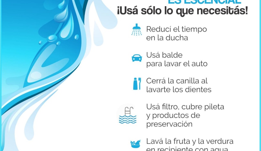 El sistema de provisión de agua se encuentra trabajando prácticamente al límite de su capacidad y es por estas razones que, se requiere a los vecinos que no cambien el agua de las piletas y natatorios de sus casas con tanta asiduidad y puedan establecer mecanismos como la utilización de cloro o lavandina que permitan su conservación durante más tiempo y ello colabore a disminuir el consumo. Asi mismo se solicita no baldear las veredas y evitar el lavado de vehículos.