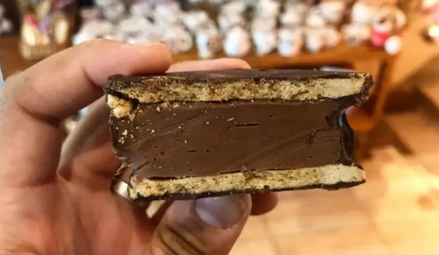 Esta delicia tiene dos galletas con 50 gramos de relleno de mousse de chocolate de licor. "Controlamos el punto justo de equilibrio al paladar para que no sea empalagoso, es totalmente artesanal", explicó Fabiana Ocaranza, la creadora de "Milagros del cielo", en diálogo con Télam. "Son 22 años de trabajo, hay mucho atrás de esto, para mí es el premio a mucho esfuerzo, estoy feliz", agregó.
