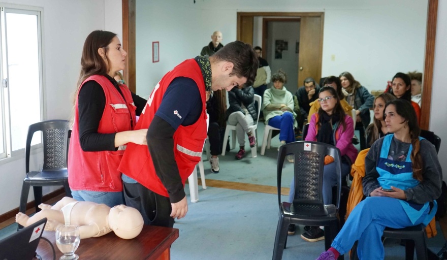 Bajo las instrucciones de la actual coordinadora de la filial necochense, Bianca Steffen, la formación abordó la temática de RCP (Reanimación Cardio Pulmonar), así como otras medidas prácticas a tener en cuenta con respecto a situaciones que pueden llegar a surgir en los talleres que se dictan en las diferentes sedes.