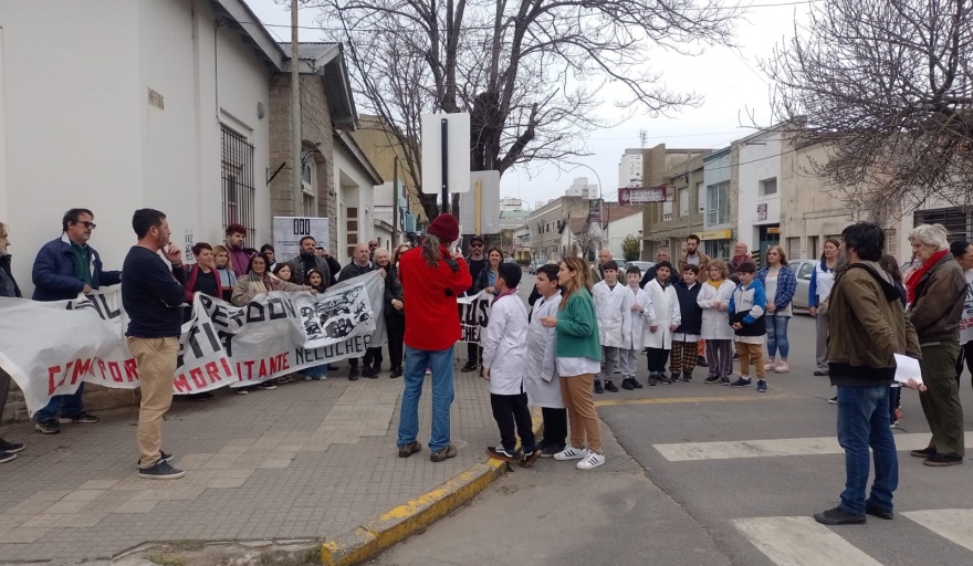 En Necochea, el acto de colocación de la cartelería contó con una gran concurrencia de vecinos y vecinas, además de la especial participación del alumnado del sexto grado de mencionado establecimiento educativo, que desde esta semana verá el recuerdo de Claudio plasmado para siempre en sus puertas.