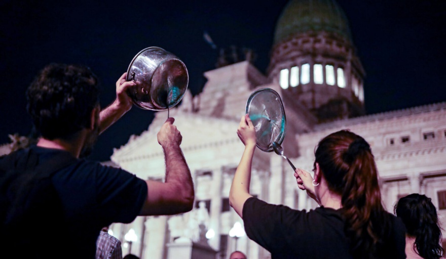 La noche del jueves vio grandes concentraciones de "caceroleros" en el Congreso nacional, Plaza de Mayo y distintos puntos del país, custodiadas por la Policía, para manifestarse por segundo día consecutivo en rechazo al Decreto de Necesidad y Urgencia (DNU) 70/2023 anunciado por el presidente Javier Milei.
