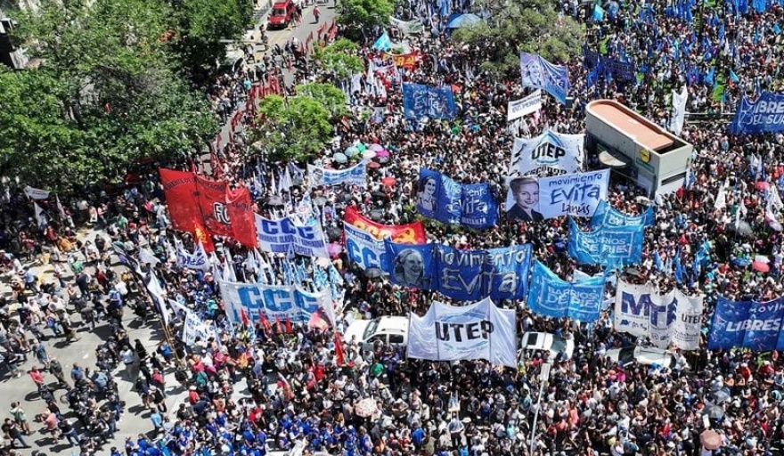 Organizaciones sindicales, mayormente bonaerenses y porteñas, llenaron la Plaza Lavalle y las calles aledañas a los Tribunales de la Ciudad Autónoma de Buenos Aires para manifestarse en contra el DNU del presidente Javier Milei y acompañar la presentación de una demanda judicial. "Paro general" y "la Patria no se vende" fueron las consignas más coreadas.