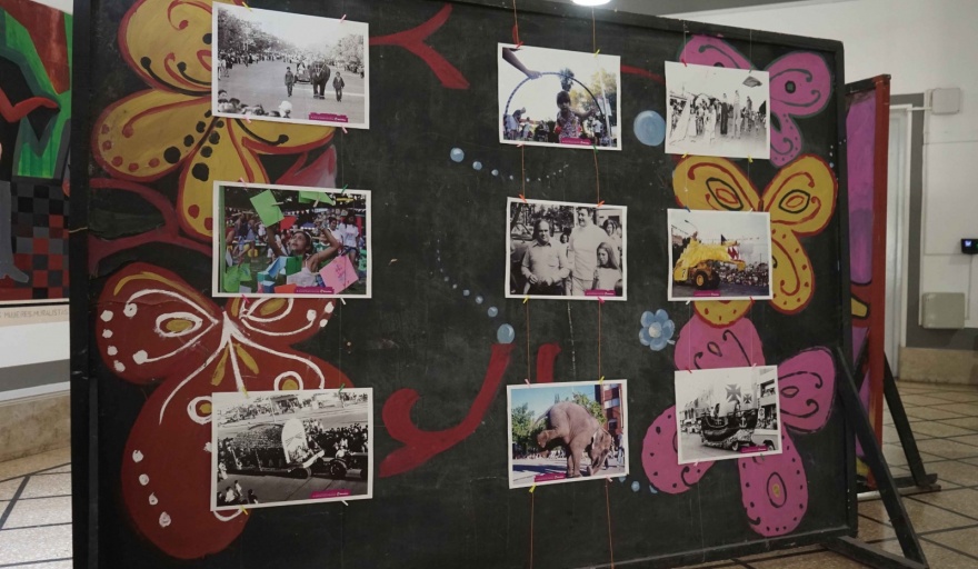 En el hall del Palacio comunal, apenas se suben las escaleras hacia el primer piso del edificio, sobre el ala izquierda se asoman dos enormes pizarras que exhiben fotografías que repasan la historia de las 62 ediciones anteriores del Festival Infantil, una muestra que se exhibe desde este martes y que estará abierta al público en general hasta el mismo viernes, fecha en la que dará comienzo en la Plaza Dardo Rocha la celebración dedicada a los niños y las niñas más importante del país, y que este año tendrá como caracterización referencias a “El Circo”.