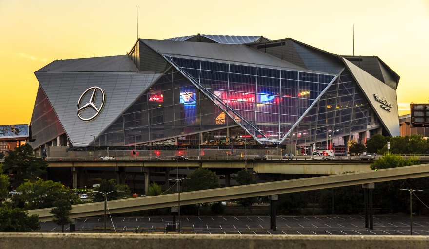 El revolucionario Mercedes-Benz Stadium, además será anfitrión de ocho partidos de la Copa Mundial de la FIFA 2026, incluyendo una semifinal. El estadio se destaca por su techo retráctil, compuesto por ocho piezas triangulares translúcidas, en forma de flor, que se deslizan en línea recta. Además, contiene una novedosa pantalla circular que está pegada al techo en forma de aro, y se llama Halo Board. Este impresionante diseño ha inspirado a otros estadios como el resideñado Santiago Bernabéu del Real Madrid.