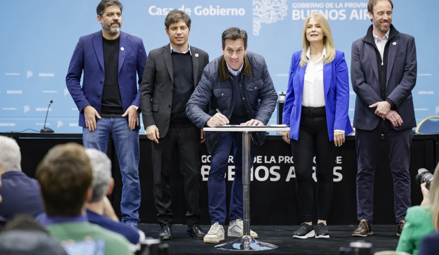 Antes de la rúbrica de los referentes comunales, el mandatario provincial destacó que "al mismo tiempo que continuamos reclamando por los recursos que les corresponden a los 17 millones de bonaerenses, la Provincia de Buenos Aires está cumpliendo con el compromiso sellado en la Legislatura con los 135 municipios".